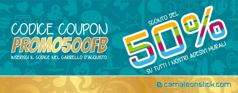 Non stiamo facendo uno scherzo, non preoccuparti, è tutto vero e quindi nessun pesce d’aprile. Scopri le collezioni di adesivi murali e scegli fra wall stickers, lavagne adesive e frasi personalizzate, ti basterà solamente copiare il codice coupon “PROMO500FB” ed inserirlo nel carrello durante l’acquisto per ottenere subito lo sconto.