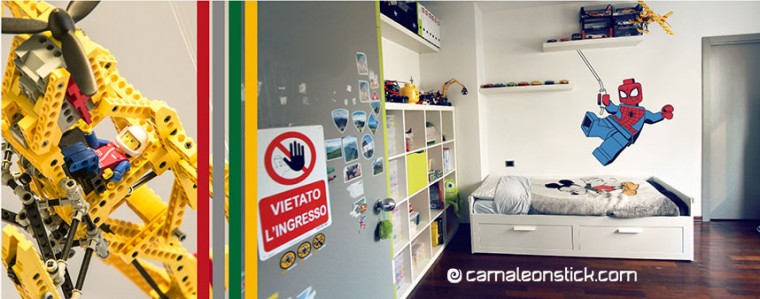 Il nostro “cliente” è stato Lorenzo un meraviglioso bambino di sei anni. Lorenzo è stato un cliente modello e non ha avuto bisogno di chiedere nessun consiglio ai genitori sulla scelta del wall sticker per la sua cameretta. Aveva le idee chiarissime fin da subito: “vorrei i lego” ci ha chiesto… e allora i lego siano!