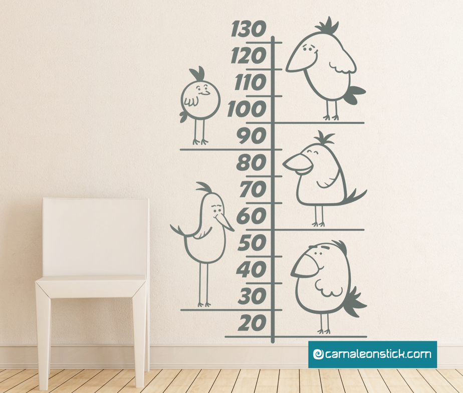 Con l'adesivo murale Metrino uccellini sarà facilissimo misurare l'altezza del tuo bambino. 5 affettuosi uccellini da applicare nella cameretta e adatto sia ad un bambino che ad una bambina.