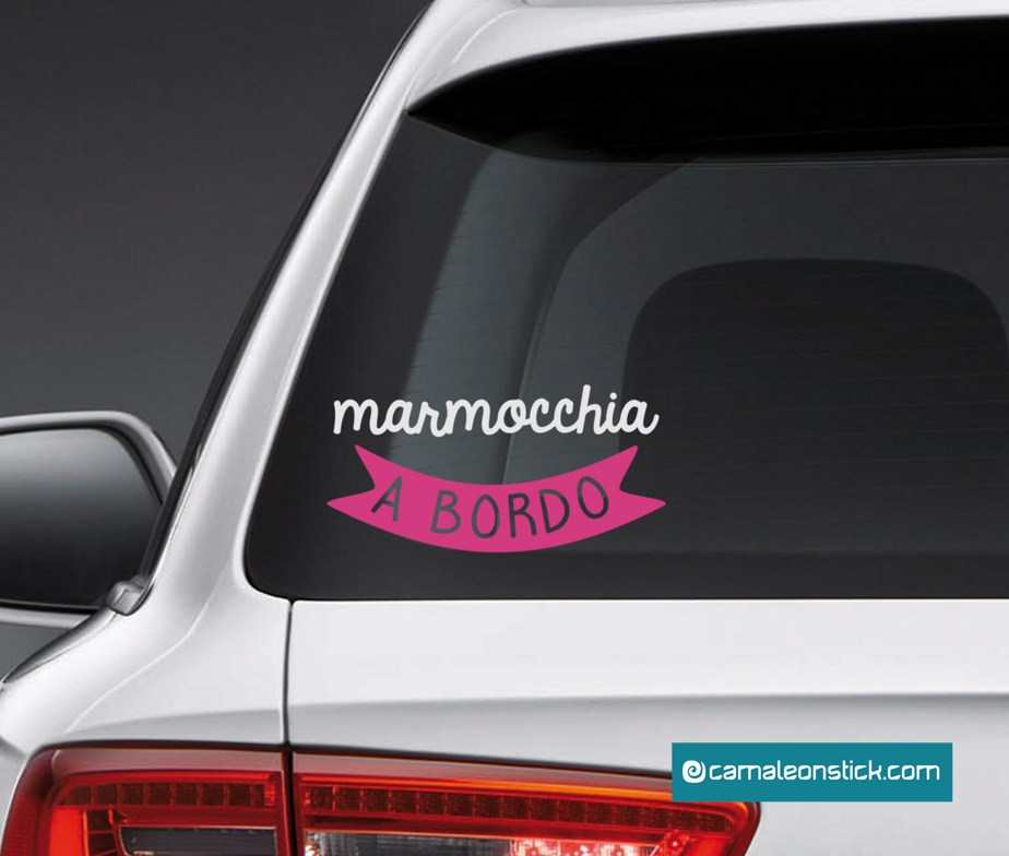 Decorate il lunotto posteriore della vostra auto con l'adesivo “Marmocchia a bordo”