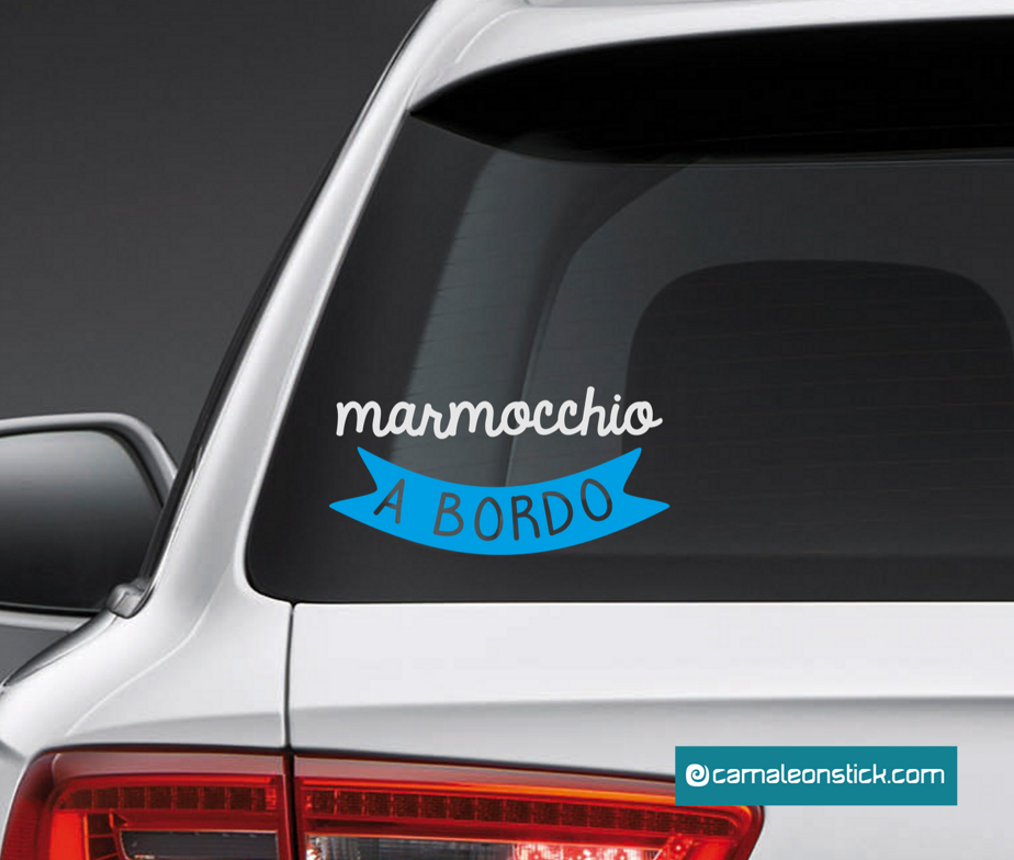 Decorate il lunotto posteriore della vostra auto con l'adesivo “Marmocchio a bordo”