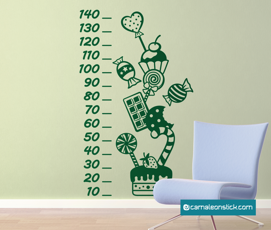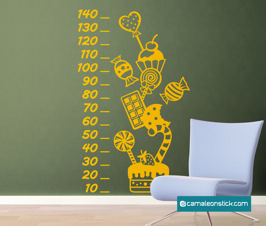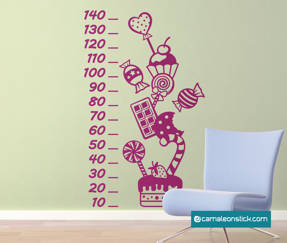 Con l’adesivo murale Metrino dolci sarà facilissimo misurare l'altezza del tuo bambino. Una pioggia di golosissimi dolci da applicare nella cameretta e adatto sia ad un bambino che ad una bambina.