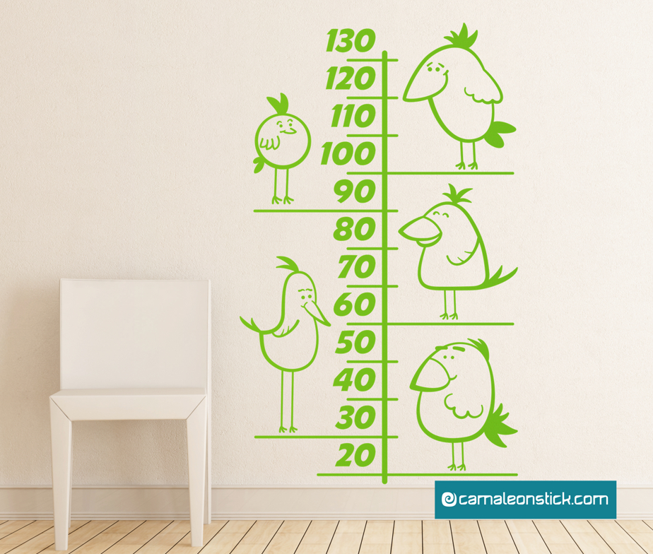 Con l'adesivo murale Metrino uccellini sarà facilissimo misurare l'altezza del tuo bambino. 5 affettuosi uccellini da applicare nella cameretta e adatto sia ad un bambino che ad una bambina.