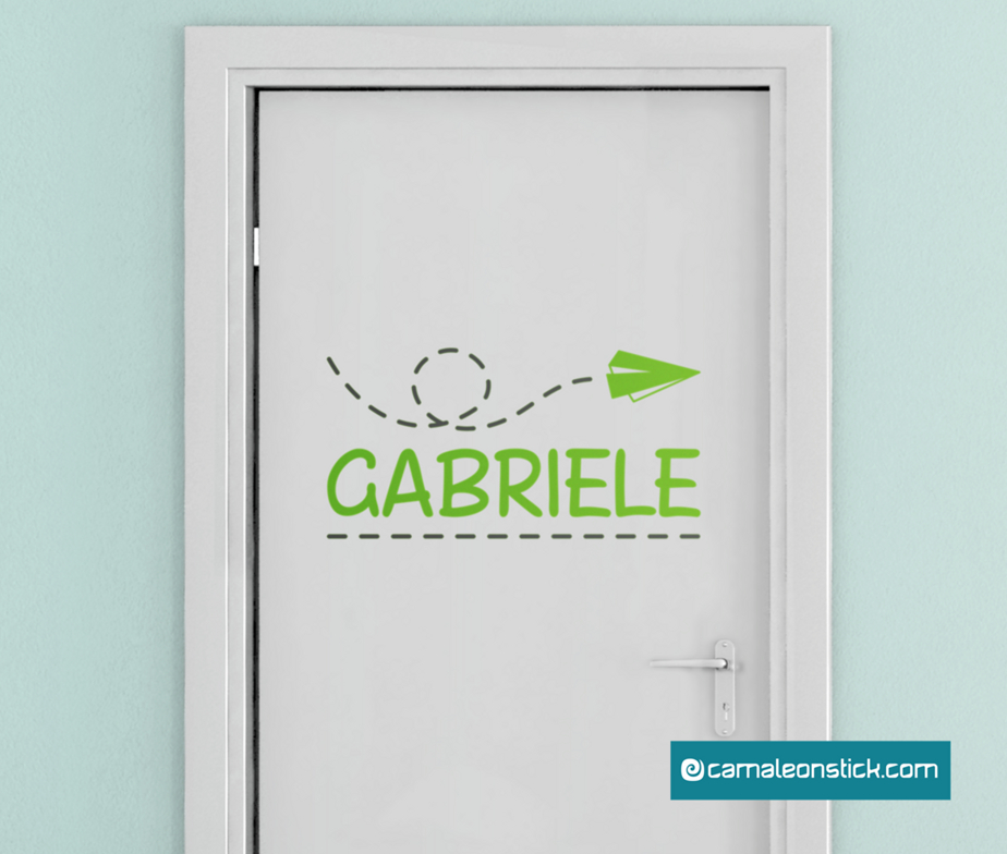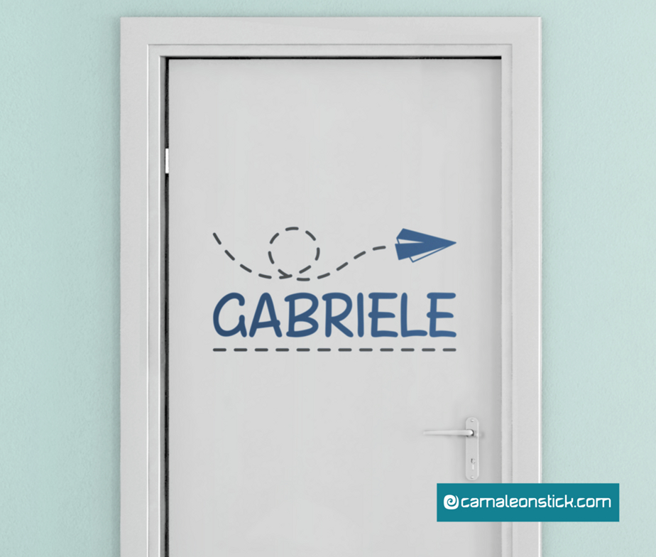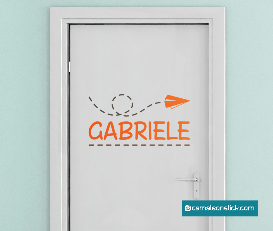 Decorate la porta della cameretta con l’adesivo murale Nome personalizzato aereo.