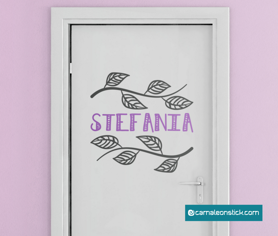 Decorate la porta della cameretta con l’adesivo murale Nome personalizzato foglie.