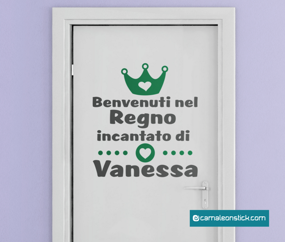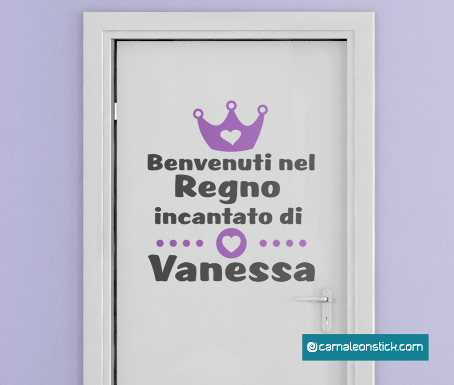 Decorate la porta della cameretta con il wall stickers Nome personalizzato regno incantato.