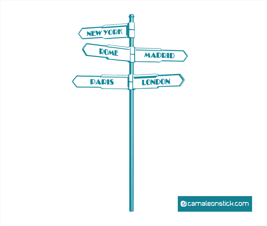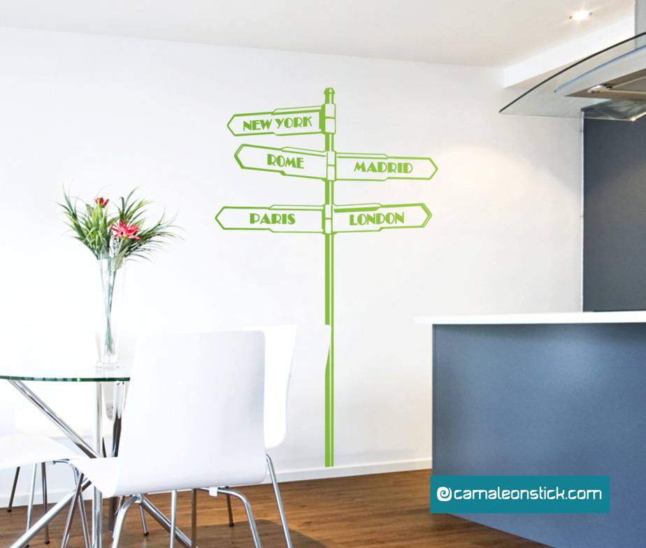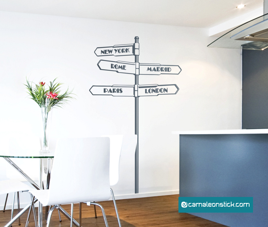 Il cartello con le indicazioni delle città più famose da applicare in ingresso o nel corridoio. L’originale adesivo murale Cartello città decora l'ambiente e aggiunge un tocco di design alla casa.