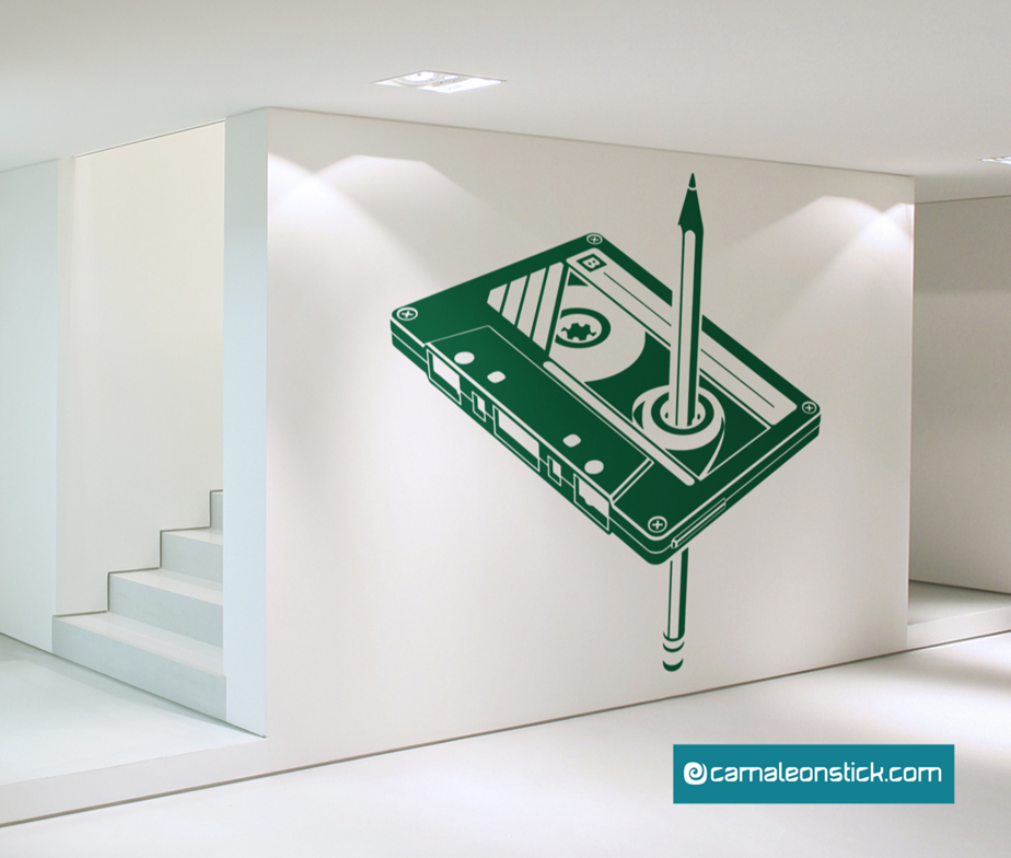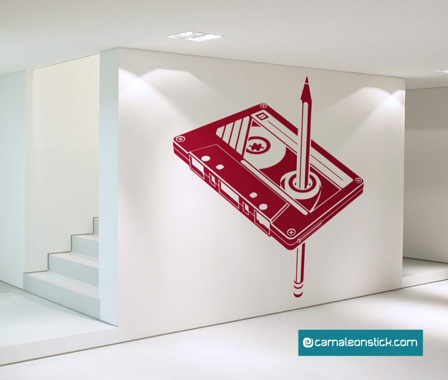 Un salto nel tempo e nella nostalgia con l’adesivo murale cassetta e matita. l’adesivo murale musicassetta per arredare gli ambienti con uno stile vintage.