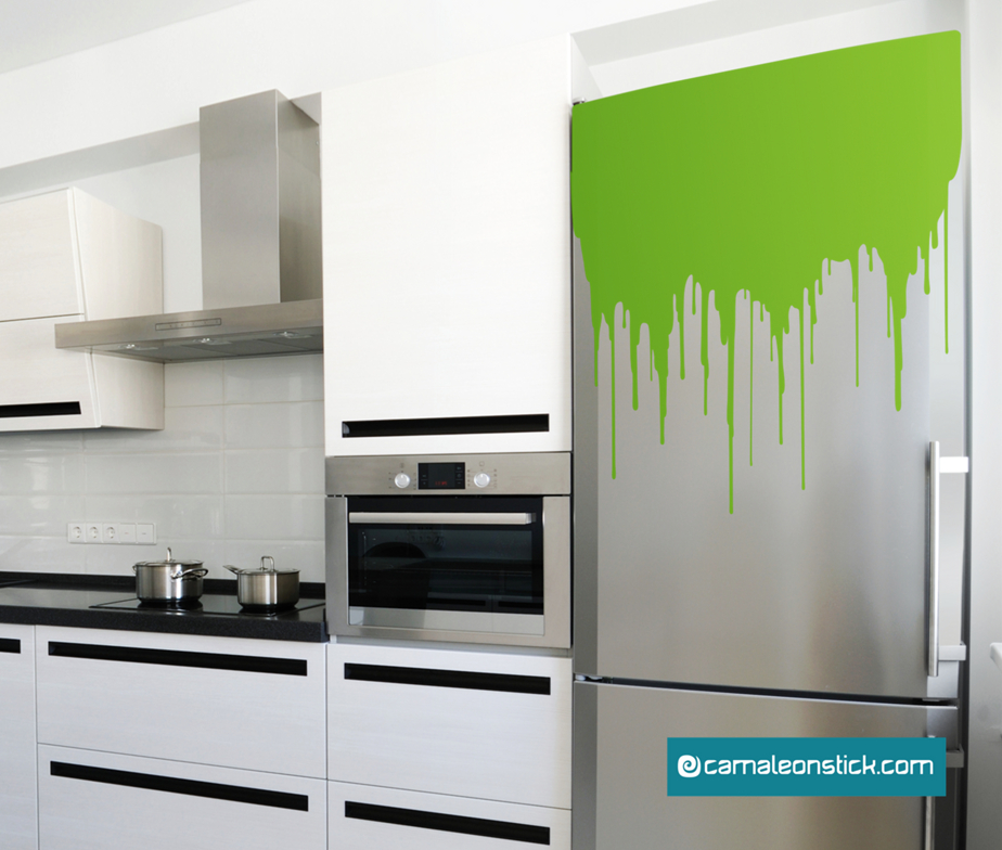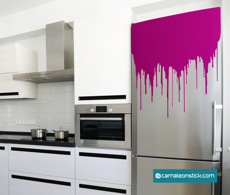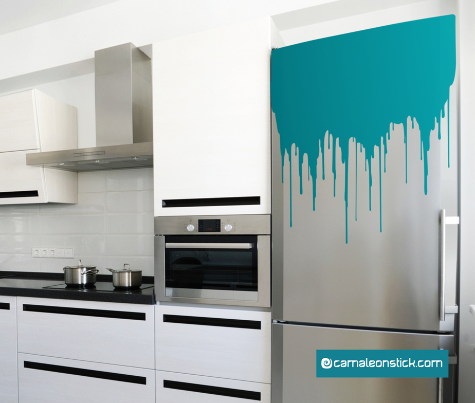 Una colata di vernice da applicare in cucina sul frigorifero o sulle ante dell'armadio. L’originale adesivo murale Vernice decora l'ambiente e aggiunge un tocco di design alla casa.