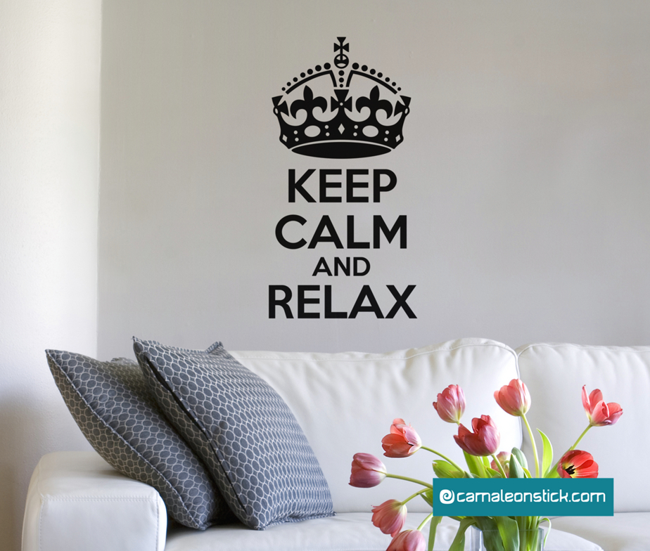 keep calm relax. L’originale adesivo murale keep calm decora l'ambiente e aggiunge un tocco di design alla casa.