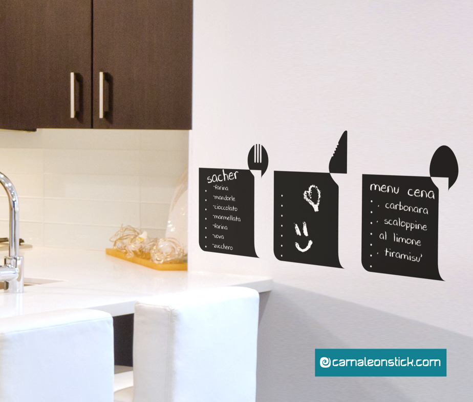 Le lavagne Camaleon sono speciali pellicole adesive sulle quali è possibile disegnare sia con normali gessetti colorati che con i pennarelli a gesso liquido. Potrete scrivere e facilmente cancellare tutte le volte che desiderate con un panno umido.